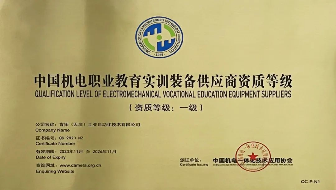 此次會議全面回顧和總結過去一年工作,同期還召開了協會第六屆理事會第七次會議、第一屆專家委員會成立會議、第二屆教育培訓工作委員會成立會議以及綠色智能制造委員會成立會議,年會邀請了行業老領導、國內外專家學者、企業家和來自全國近300余名代表齊聚一堂,縱論發展、謀劃未來、交流熱烈。同時在開幕式上,李亞平會長對首批獲得中國機電職業教育實訓裝備供應商資質等級評定的2家單位進行了授牌,我公司獲首批中國機電職業教育實訓裝備供應商資質等級(一級)評定,公司總經理葛云濤代表企業參加了授牌儀式。