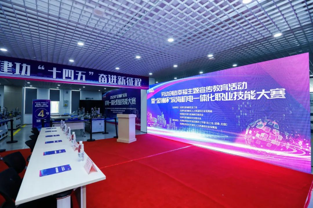 由天津市濱海新區(qū)區(qū)總工會(huì)、區(qū)人社局、團(tuán)區(qū)委、區(qū)婦聯(lián)聯(lián)合舉辦的2023年“金錘杯”濱海機(jī)電一體化職業(yè)技能大賽,于2023年8月9日在我公司實(shí)訓(xùn)基地隆重舉行。濱海新區(qū)總工會(huì)黨組成員、經(jīng)費(fèi)審查委員會(huì)主任張冬青,濱海新區(qū)團(tuán)區(qū)委副書記高媛,濱海新區(qū)婦聯(lián)副主席袁杰,濱海新區(qū)總工會(huì)基層工作部副部長(zhǎng)徐壽愛以及經(jīng)開區(qū)相關(guān)領(lǐng)導(dǎo)出席此次大賽開幕式,我公司黨支部書記、總經(jīng)理葛云濤受邀參加。