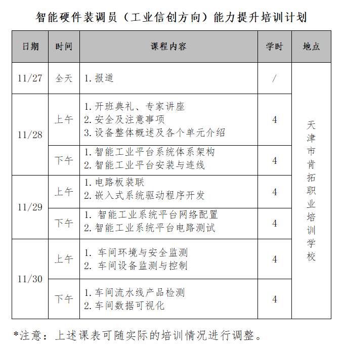 為全面貫徹落實黨的二十大關于深入實施人才強國戰略部署,大力弘揚勞模精神、勞動精神、工匠精神,推動我國電子信息產業數字化轉型和高質量發展,深化產教融合,旨在為技能人才提升職業技能水平和創新創效能力搭建平臺、提供幫助,進一步提高技能人才素質和水平,加強項目實踐的綜合能力、應變能力,助力新時代高質量技能人才的培養。經商討決定天津市津南區肯拓職業培訓學校舉辦“智能硬件裝調員(工業信創方向)能力提升培訓”。具體內容如下: